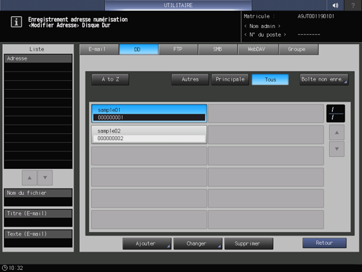 Utilisez le clavier affiché sur l'écran tactile pour saisir la valeur de réglage.