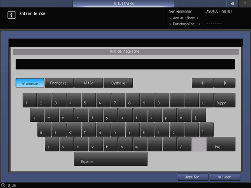 L'écran de saisie des caractères sert à la saisie de lettres et de symboles.