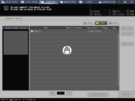 Vous pouvez vous déplacer dans la liste de l'écran RAPPELER à l'aide de la molette.