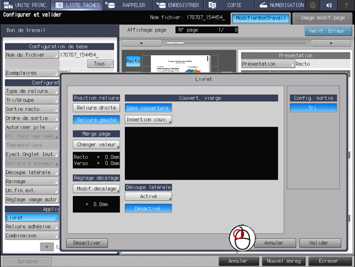 Mouvement automatique du curseur : appuyez sur Livret dans le coin inférieur gauche de l'écran. Le curseur se déplace automatiquement dans la fenêtre contextuelle.