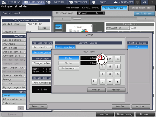 Saisie de valeur à l'aide de la molette : appuyez sur Livret dans le coin inférieur de l'écran, appuyez sur Changer valeur et augmentez la valeur en tournant la molette vers le haut.