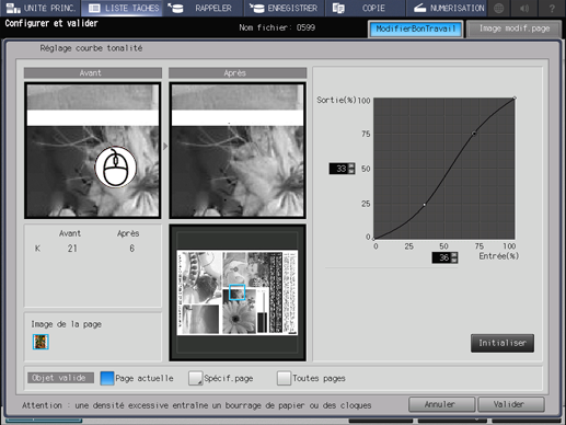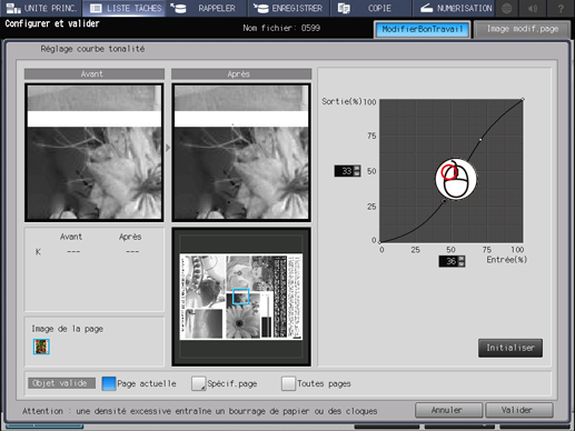 Si le curseur est placé quelque part sur l'image Avant ou Après, la valeur Noir avant et après le réglage s'affiche.