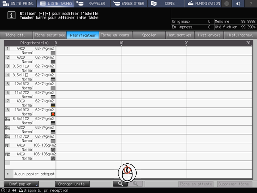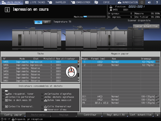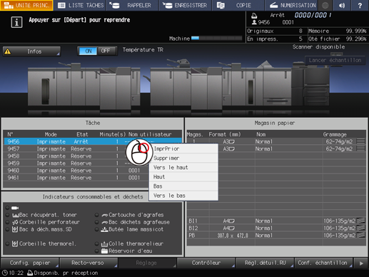 Vérifiez qu'il n'y a pas de tâche dans la liste de tâches réservées au centre gauche de l'écran UNITÉ PRINC.