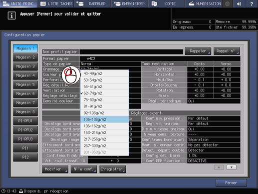 Confirmez les opérations suivantes sur l'écran Config. papier.