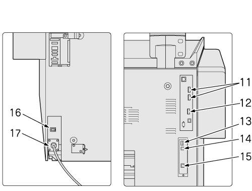 14 | Port de service (USB 2.0 type B 1) | Connectez cette machine à l'ordinateur au moyen d'un câble USB afin de l'utiliser en tant qu'imprimante locale. |