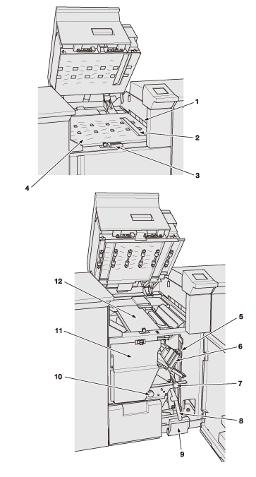 4 | Bac Livret | Reçoit les livrets reliés. Retirer le magasin pour sortir les livrets produits. |