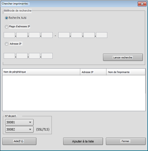 Explication supplémentairePour rechercher les machines en entrant l'adresse IP, cliquez sur Plage de recherche adr. IP ou sur Recherche Désignation Adresse IP.