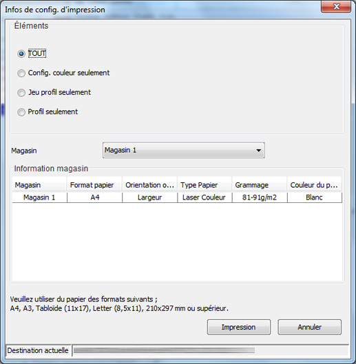 Sur l'écran Color Centro, cliquez sur Fichier - Infos de config. d'impression.