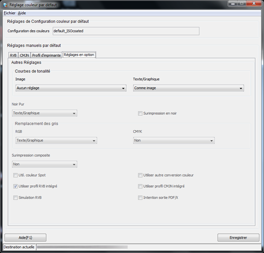 Réglages de Configuration couleur par défaut