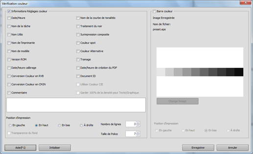 Cliquez sur Informations Réglages couleur, puis sélectionnez les éléments.