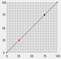 De plus, les positions à 25 %, 50 % et 75 % peuvent être ajoutés automatiquement à la courbe comme points de référence conformément aux réglages de l'onglet Luminosité/contraste. Vous pouvez également régler la courbe de tonalités en faisant glisser le point.