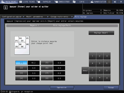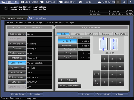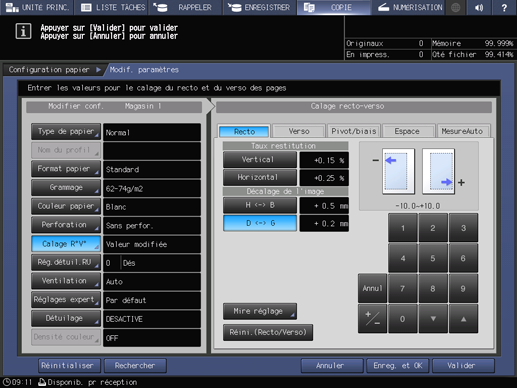 Lorsque vous effectuez le calage recto pour un papier de marque, grammage ou format nouveau, appuyez sur Enreg. et OK et passez à l'étape suivante.