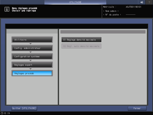 • Avant de procéder au réglage de la densité maximale, effectuez les réglages suivants :