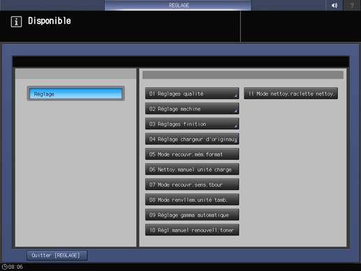 Sur l'écran tactile de l'imprimante, appuyez sur Réglage sur l'écran UNITÉ PRINC.