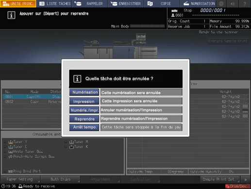 Explication supplémentaireAppuyez sur Impression pour arrêter la tâche d'impression et poursuivre la tâche de numérisation.
