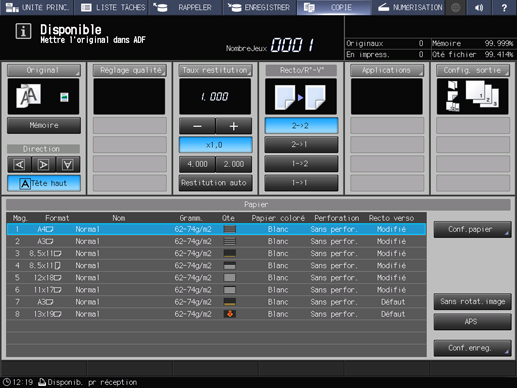 Appuyez sur l'onglet COPIE pour afficher l'écran COPIE.