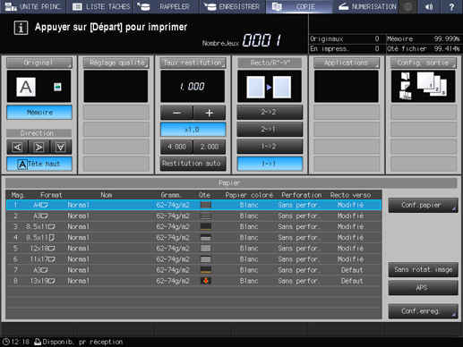 Appuyez sur l'onglet COPIE pour afficher l'écran COPIE.