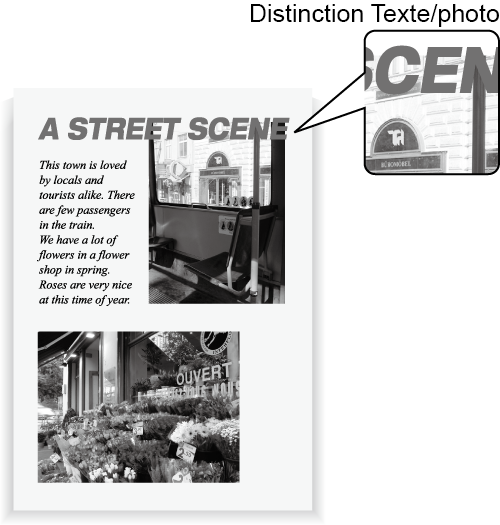 Sélectionnez un niveau de -1 à -4 pour augmenter la proportion de photo dans la détection Texte/photos.