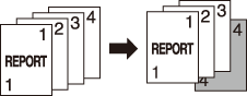 Couverture verso + Vierge | Une feuille vierge est insérée pour la couverture verso comme dernière feuille indépendamment du mode d'impression recto/recto-verso de l'original ou de la copie. ![]() |