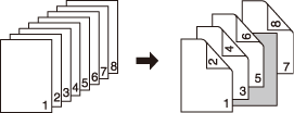 1->2 | Une feuille vierge est insérée après la copie en recto-verso de la 5e et de la 6e feuille d'un original recto. Si vous spécifiez la page 6, le résultat de sortie sera le même.