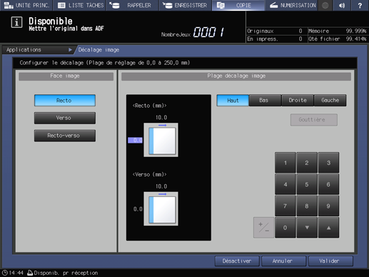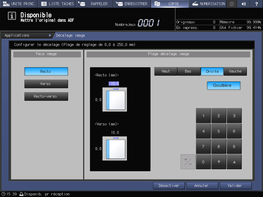 Explication supplémentairePour avoir le même décalage des deux côtés des copies recto-verso, sélectionnez Recto-verso.