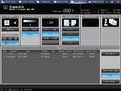 Appuyez sur Valider sur l'écran Application pour revenir à l'écran COPIE.
