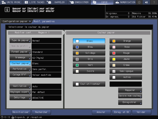 Explication supplémentairePour appliquer et enregistrer les conditions papier, appuyez sur Enreg. et OK. Passez à l'étape 27.