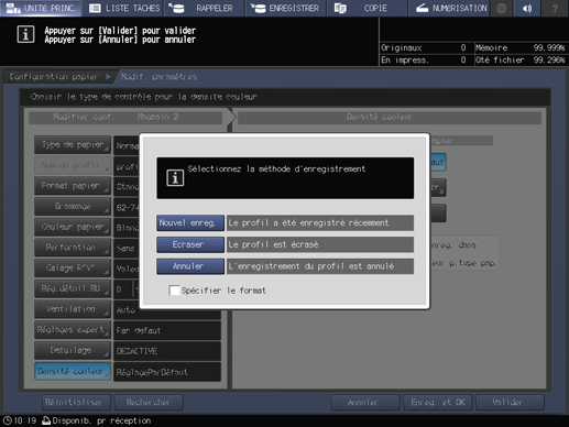Explication supplémentaireSi Désactivé est sélectionné, le contrôle densité de couleur n'est pas disponible.