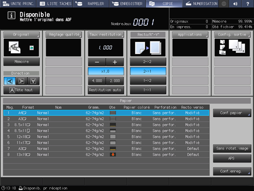 Appuyez sur l'onglet COPIE pour afficher l'écran COPIE.