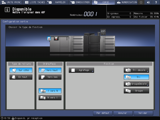 Appuyez sur l'onglet COPIE pour afficher l'écran COPIE.