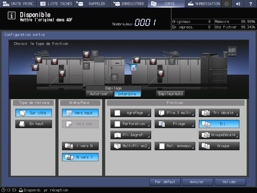 Explication supplémentaireSélectionnez une des touches Tri décalé, Tri, GroupeDécalé et Groupe.