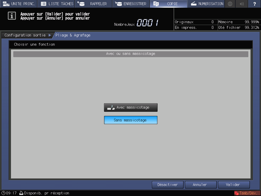L'écran de spécification du mode de massicotage s'affiche.