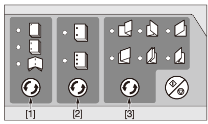 ![]() | [1] : bouton de sélection de la fonction agrafage [2] : bouton de sélection de la fonction perforation [3] : bouton de sélection de la fonction pliage |