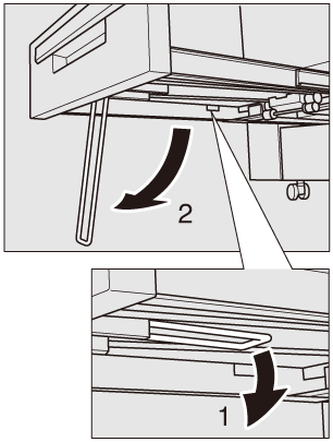 Lorsque vous utilisez le bac de réception de liasse, veillez à extraire complètement le bac. Si le bac de réception de liasse n'est pas complètement extrait, la sortie n'est pas possible. Lorsque le bac de réception de liasse est complètement extrait, remontez le support sous le bac.