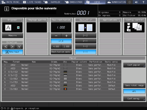 A la fin de la copie d'interruption, les réglages de la tâche précédente sont restaurés automatiquement.