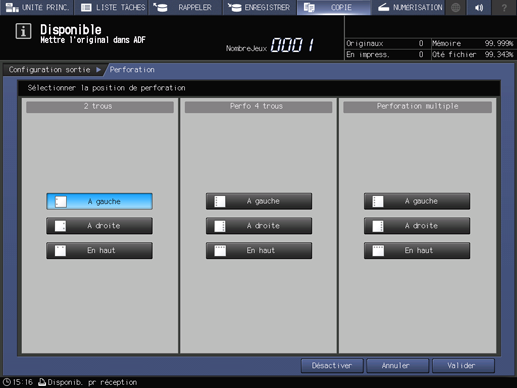 Sélectionnez la touche de position de perforation souhaitée sous Perforation multiple.