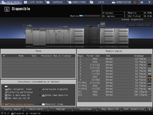 Lorsque le bac Livret est plein, le message suivant apparaît dans la zone de messages de l'écran.