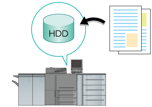 Numérisez l'original chargé sur l'ADF ou la vitre d'exposition à l'aide de la fonction copie et mettez-la en attente ou enregistrez-la sur le disque dur en tant que tâche de copie.
