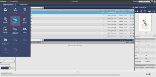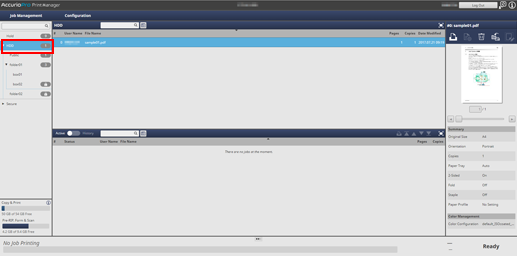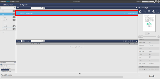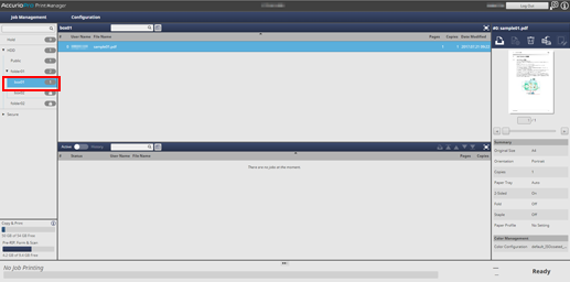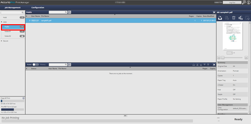 Vous pouvez utiliser AccurioPro Print Manager sur un ordinateur pour enregistrer une tâche en attente en tant que tâche enregistrée sur disque dur.