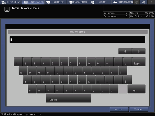 Entrez le mot de passe de la boîte de tâches sécurisées sélectionnée et appuyez sur OK.