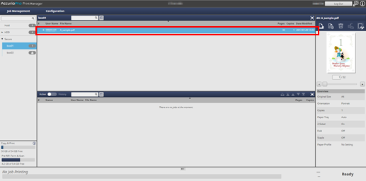 Vous pouvez modifier les paramètres d'impression d'une tâche sécurisée à l'aide de AccurioPro Print Manager sur un ordinateur.