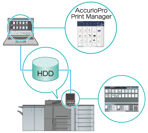 Utilisation de l'écran tactile de la machine ou de AccurioPro Print Manager pour modifier individuellement les pages des tâches en attente.