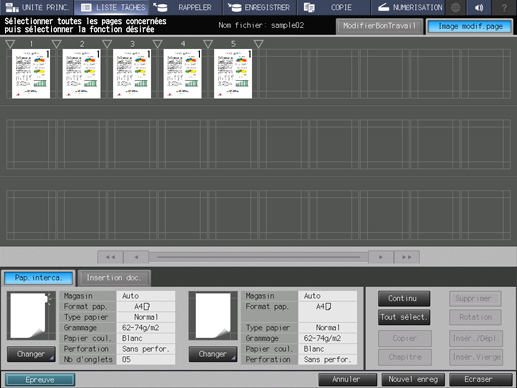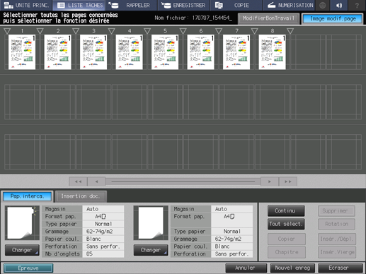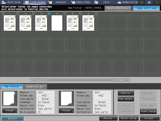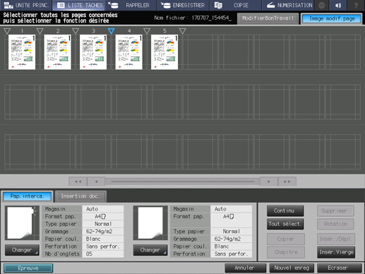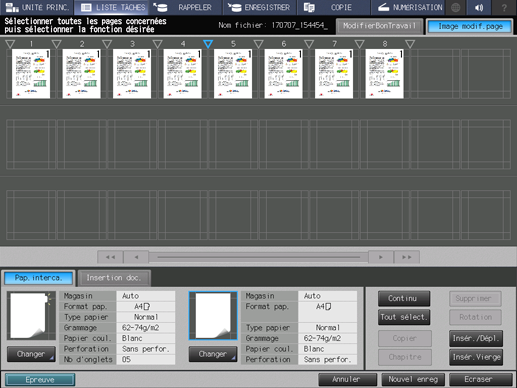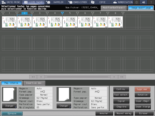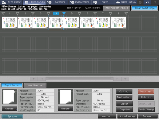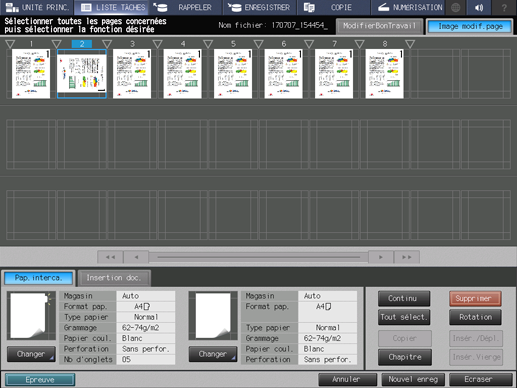 Apportez des modifications aux pages (par ex. copie, déplacement, suppression / configuration de chapitres / insertion de papier à onglet).