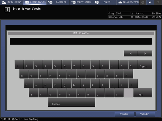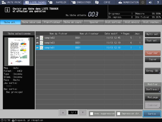 Sur l'écran tactile de l'imprimante, vous pouvez modifier les tâches sécurisées.