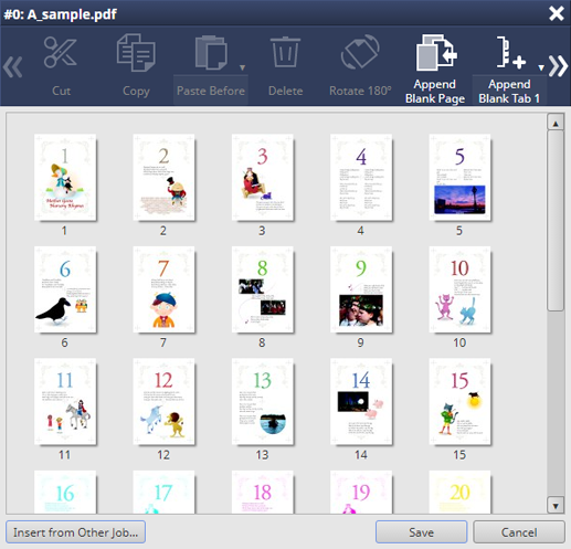 Apportez des modifications aux pages (par ex. copie, déplacement, suppression, insertion de papier à onglet ou de chapitres).