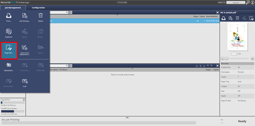 Vous pouvez utiliser AccurioPro Print Manager sur un ordinateur pour modifier les pages des tâches sécurisées.