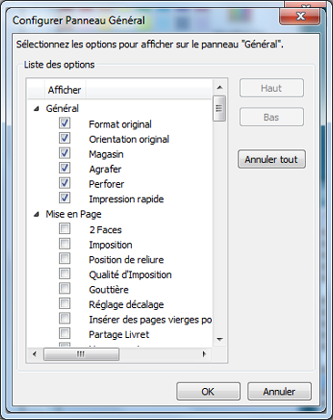 Cliquez sur l'onglet Configurer et sur Options du pilote - Configurer panneau général.
