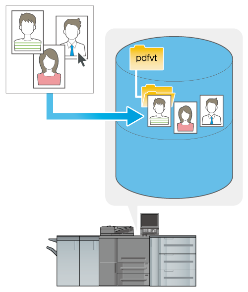Enregistrez les données de ressource VDP (données variables) dans le dossier partagé SMB, pdfvt, sur la machine.
