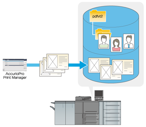 Utilisez AccurioPro Print Manager pour charger le fichier PDF/VT-2 sur l'ordinateur pour une tâche en attente, une tâche sécurisée ou une tâche sur disque dur. Cette section décrit comment charger un fichier dans une tâche en attente.