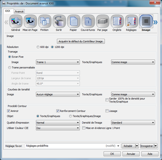 L'utilisateur peut changer la trame dans le pilote d'imprimante à l'impression.